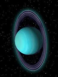 Se encuentra 2.870 millones de Km del Sol, orbitandólo en 84 años, Urano gira sobre su eje en 18 horas. Posee 27 lunas, las mas conocidas son Titania y Oberón.